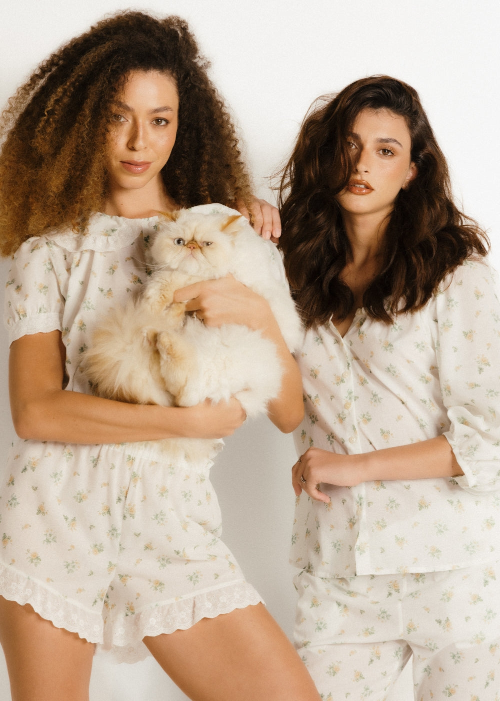 O Babydoll Babados Rosas traduz a feminilidade das peças de época em um conjunto delicado e versátil. Confeccionado em tecido leve de toque macio, traz a estampa exclusiva de rosas em aquarela criada pela artista Julia Sardinha, que adiciona um ar poético e atemporal.