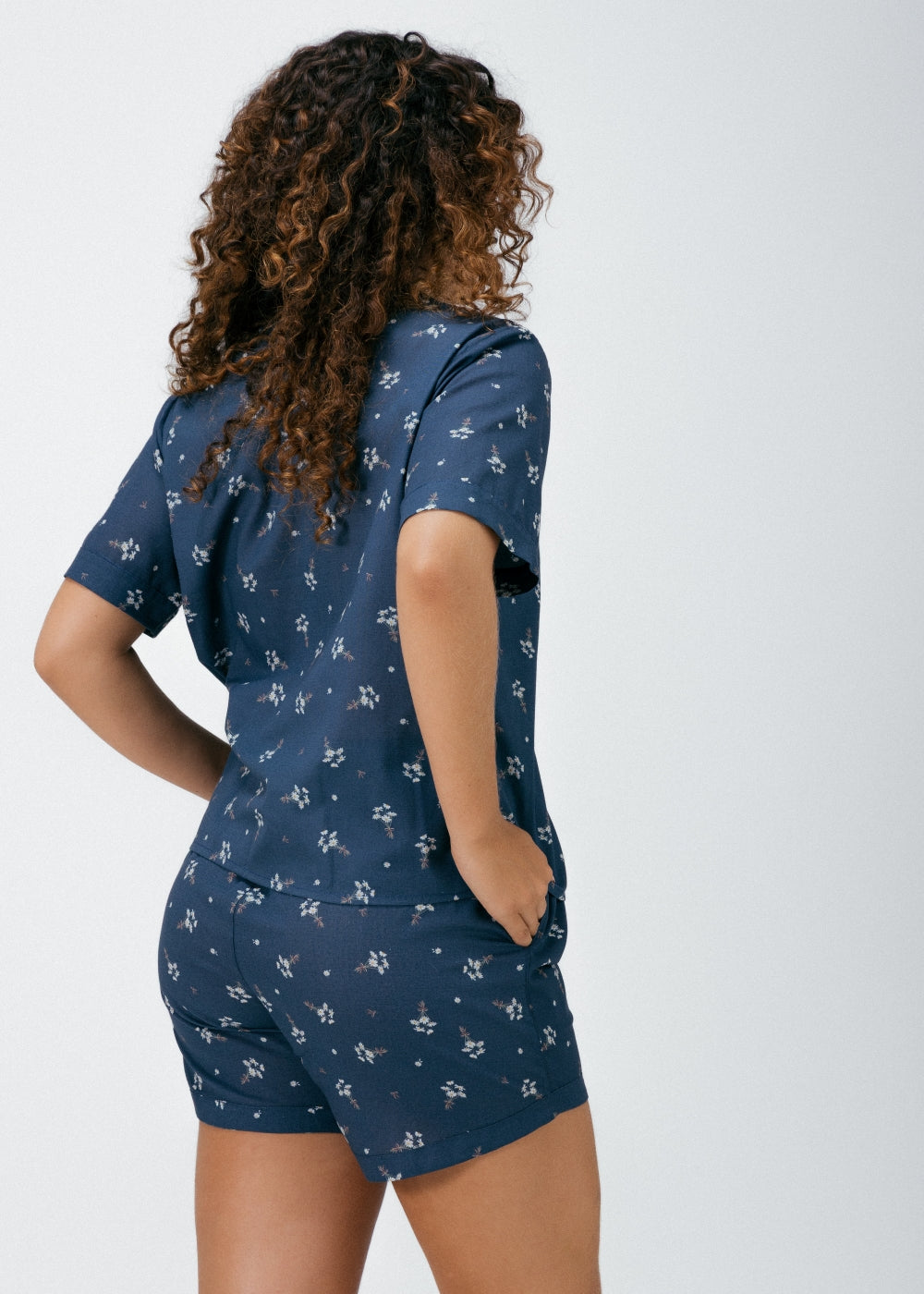 Leve, fresco e delicado, o Pijama Short Calma Azul é feito em algodão macio que deixa a pele respirar e convida a viver o tempo com mais calma. A camisa de manga curta tem modelagem clássica, gola tradicional e fechamento frontal com botões de madrepérola, um detalhe sutil que ilumina a peça com delicadeza.