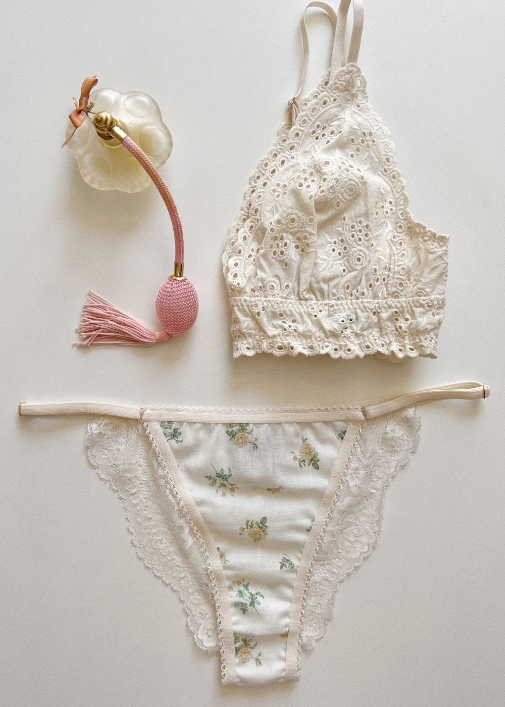 A Calcinha String Rosas é a união perfeita entre delicadeza e conforto. Sua modelagem menor valoriza as formas com leveza, enquanto a parte frontal em tecido 100% algodão com estampa exclusiva de rosas traz um toque romântico e atemporal. A parte posterior é confeccionada em renda com elastano, sem aplicação de elásticos, garantindo suavidade no vestir. As laterais com viés macio e regulagens douradas proporcionam o ajuste ideal ao corpo, tornando a peça tão encantadora quanto confortável.